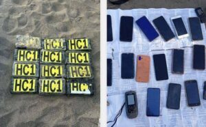 Cell phones and geolocation devices were also found on the boat, said the Navy, which released images of the abandoned boat, suspected drugs and phones.