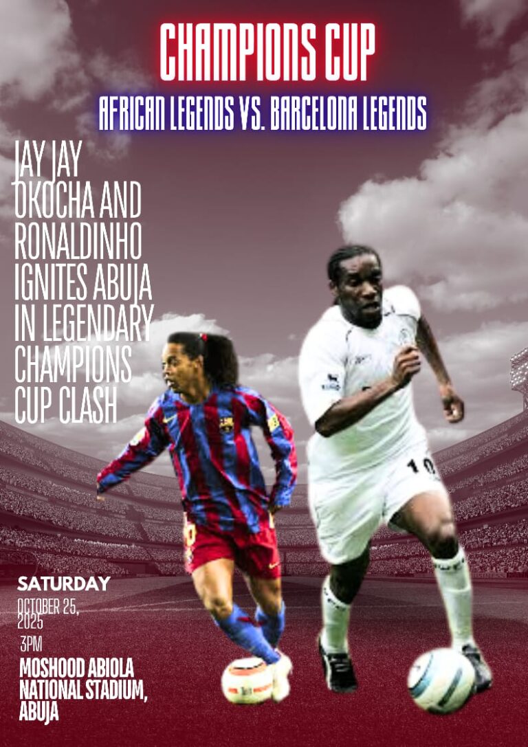 The Champions Cup Game, organized by Attom Foundation and supported by ZMB Homes and WGI, will see global icons from FC Barcelona take on African Legends. The clash is scheduled to hold on October 25, 2025, 3pm, at the Moshood Abiola National Stadium, Abuja.