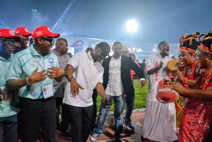 The closing ceremony featured fireworks and a display of the rich cultural heritage of Edo State and the Niger Delta people as well as music by popular artistes such as Rhema.