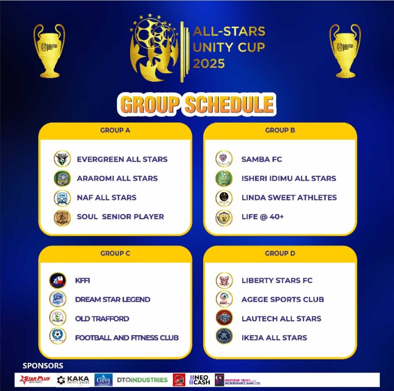 The tournament is proudly supported by prominent brands, including Starplus Batteries, Grej Table Water, DTO Industries, Neocash, Shepherd Trust Microfinance Bank, Durban Hotels, Paulvic Interlink, Libro Autos and Real Estate, Lifeworth HMO, and The Place Restaurant.