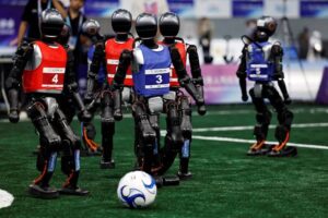 Football matches help train robots’ coordination abilities, which could prove useful for assembly line operations requiring collaboration between multiple units, commentators said.