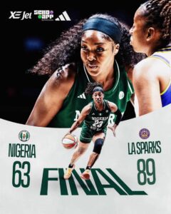 Nigeria’s senior women’s basketball team, D’Tigress, began their WNBA Tour with a 63–89 defeat to the the Los Angeles Sparks in a spirited preseason clash in the United States.In what marked a historic outing—making Nigeria the first nation to face a WNBA franchise—the encounter formed a crucial part of D’Tigress’ preparations for the forthcoming FIBA Women’s Basketball World Cup. While the Sparks eventually secured a 26-point victory, the Nigerian side delivered a resilient and commendable performance against top-tier opposition.
