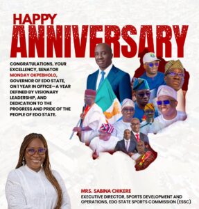 Mrs. Sabina Chikere, Executive Director of Sports Development and Operations at the Edo State Sports Commission, praised the Governor’s first year in office as “monumental” for sports in the state.