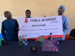 To recognize her outstanding performance, Fosla Academy presented Queen Joseph with a cash gift of ₦500,000. In appreciation, Joseph presented Alhaji Sani Lulu Abdullahi with souvenirs from her national team experience.