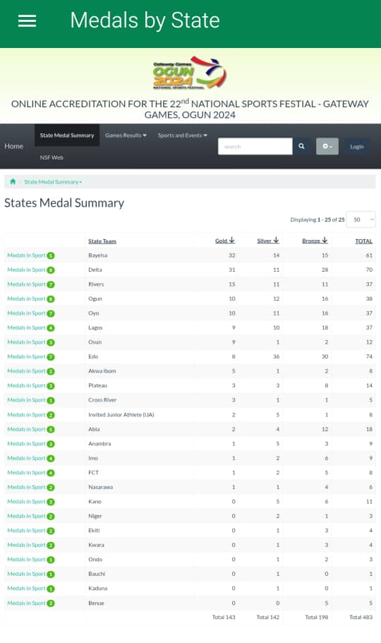 With this development, the men is fast being separated from the boys as Team Rivers occupy the third position on the medals log with 15 gold, 11 silver and 11 bronze medals. Host Team Ogun is closely placed fourth with 10 gold, 12 silver and 16 bronze, while Team Oyo is fifth with 10 gold, 11 silver and 16 bronze medals to complete the top five states on the medals table.