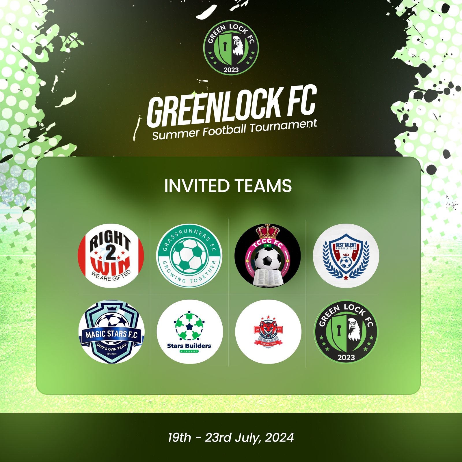 The teams billed to participate in the 5-day tournament are: Right 2 Win, Grassrunners FC, TCCG FC, Best Talent FC, Magic Stars FC, Stars Builders Academy, Ojudu City FC and host team, Greenlock FC.
