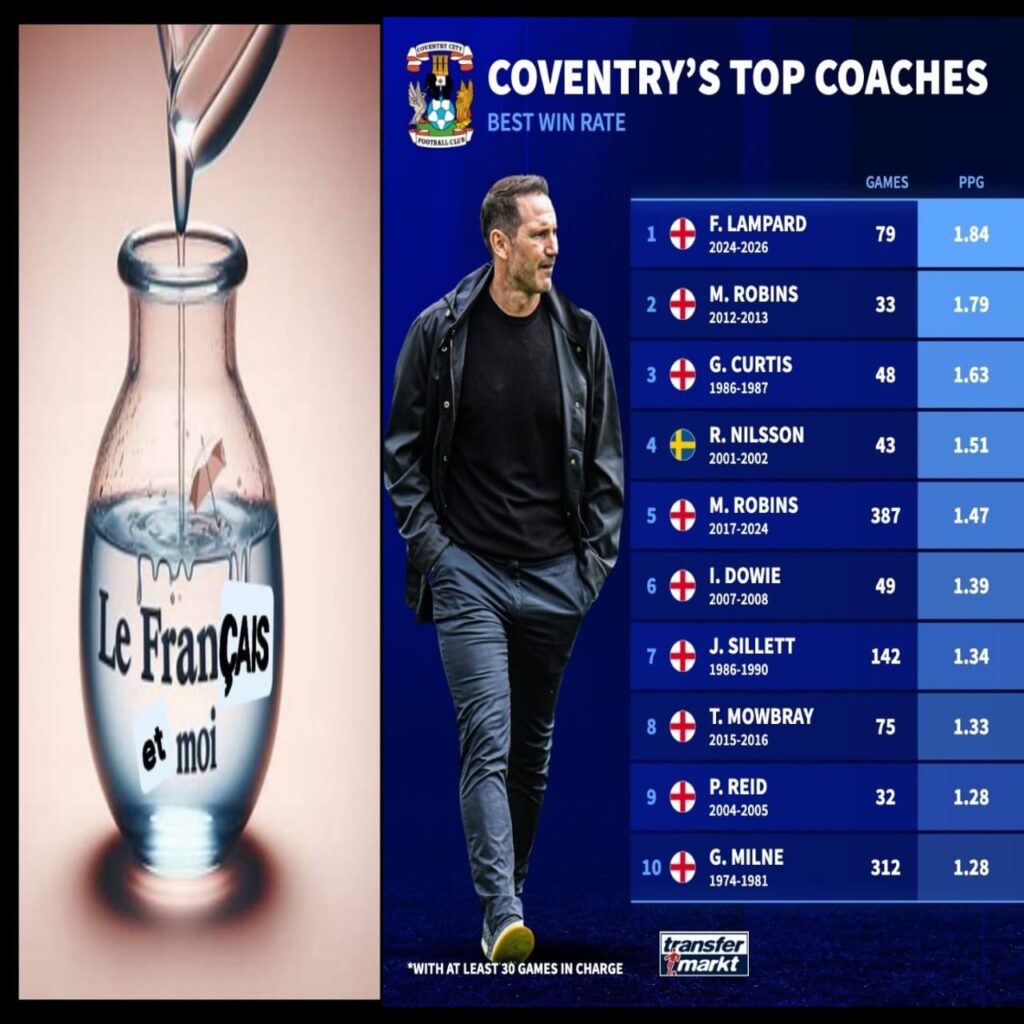 Lampard affiche une moyenne de 1,84 point par match à Coventry : la plus élevée de l’histoire du club