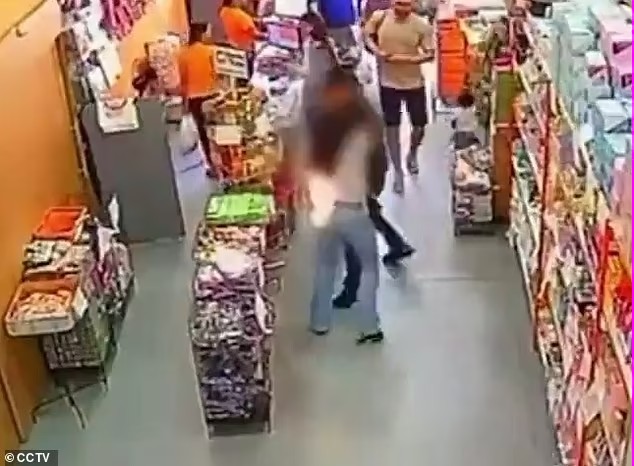 Security camera footage showed the unidentified victim standing next to her husband while they were browsing items at the store in the Brazilian city of Anápolis on Saturday.