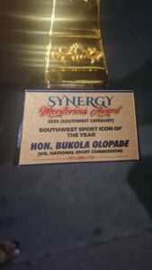 Hon. Bukola Olopade, Director General of the National Sports Commission (NSC), has been awarded the Southwest Sports Icon of the Year Award at the 2025 Synergy Meritorious Awards, for his tireless efforts in promoting sports development across the country.