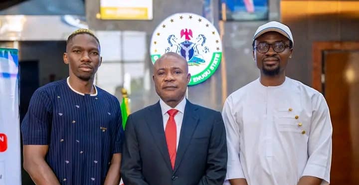 Super Eagles defender, Kenneth Omeruo, visited Enugu State Governor, Barrister Peter Mbah, on Wednesday.