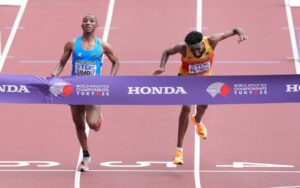 The two runners sprinted neck-and-neck into Japan National Stadium, needing a photo finish to decide it. Both clocked in at 2 hours, 9 minutes, and 48 seconds, but Simbu’s lunge at the line made the difference.